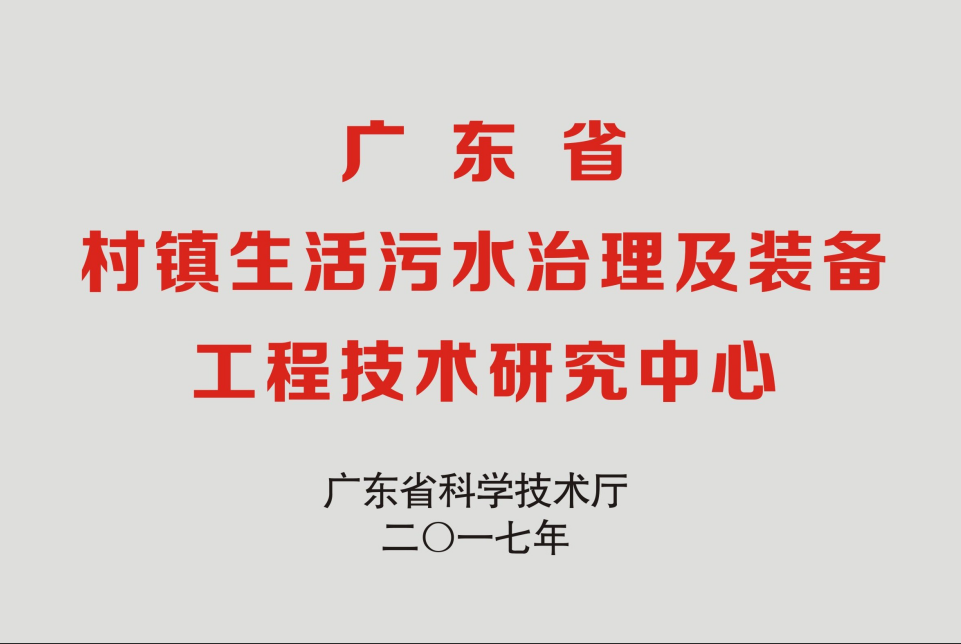 20179月,经广东省科技厅认定为广东省村镇生活污水治理及装备工程技术研究中心。